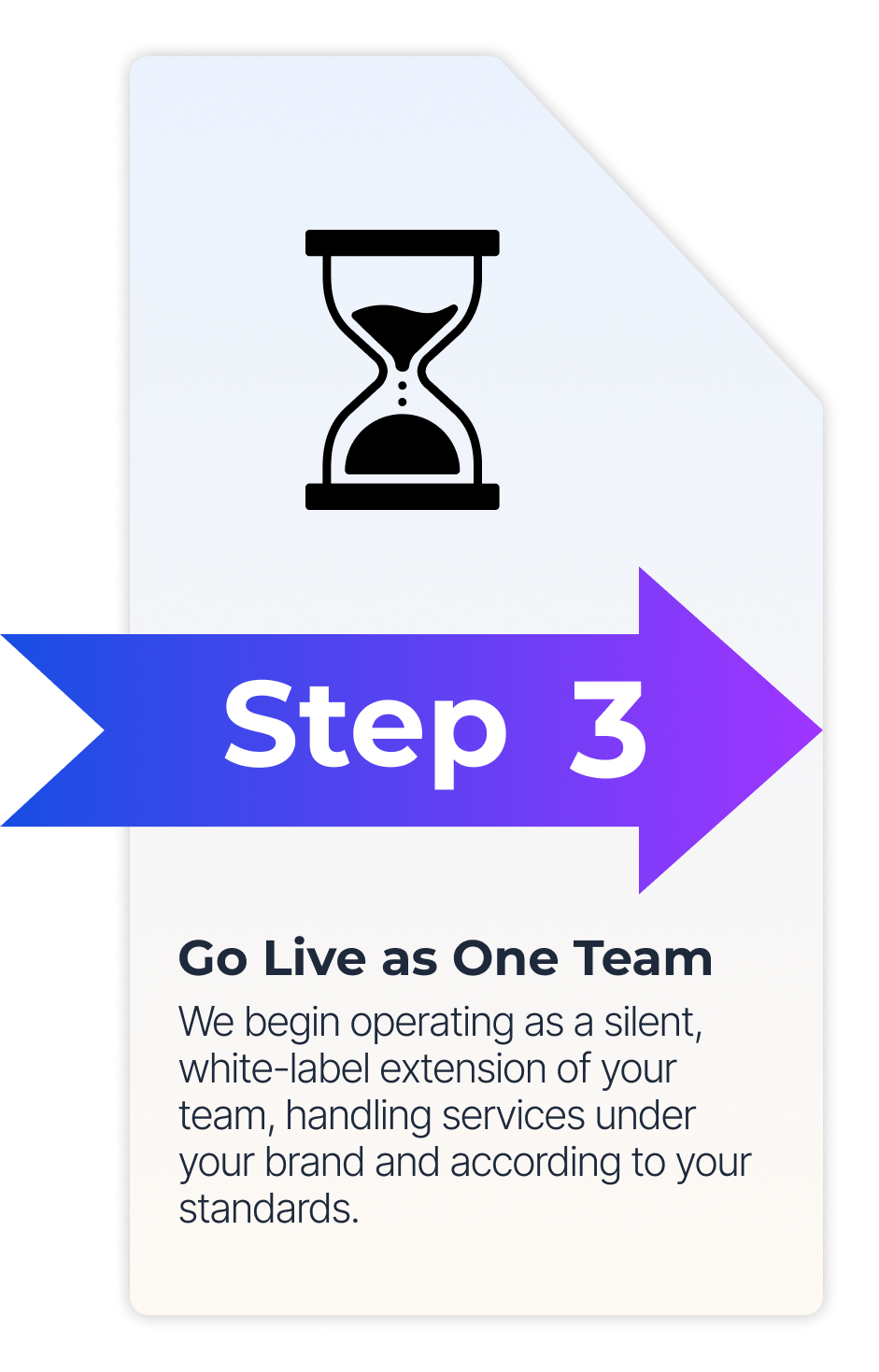 We begin operating as a silent, white-label extension of your team, handling services under your brand and according to your standards.